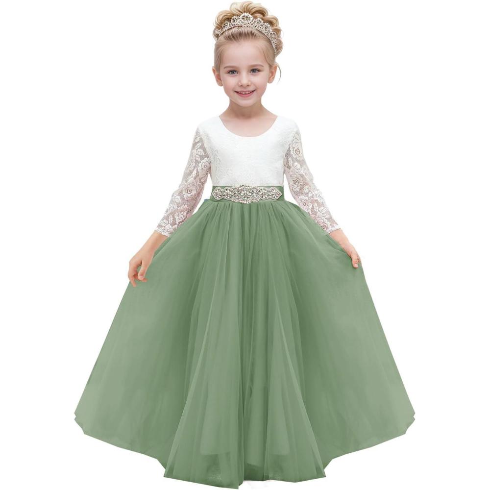 imageAbaowedding Lace VBack Flower Girl Dress Tutu Tulle Princess Party Dress with Satin SashSage Green