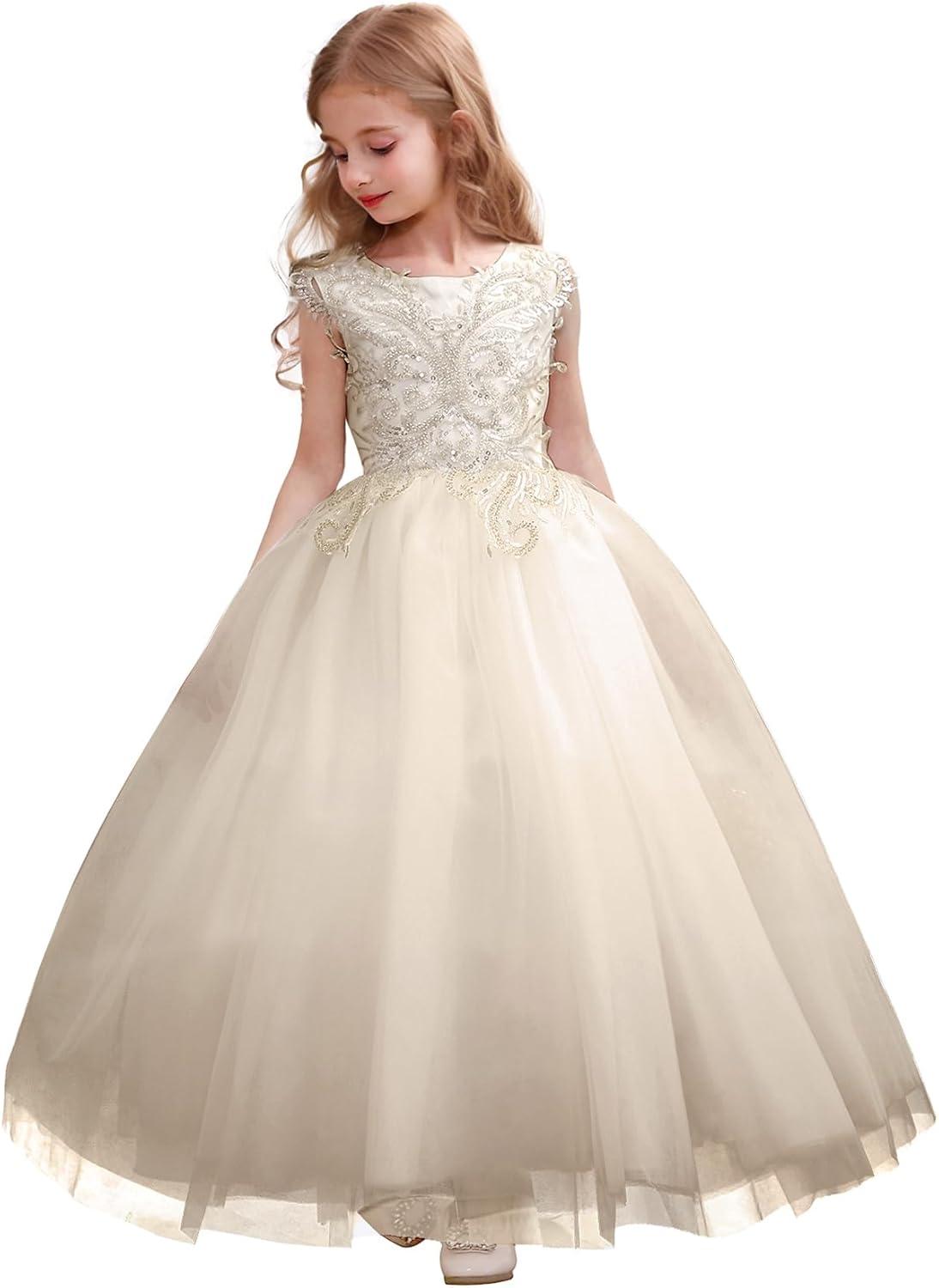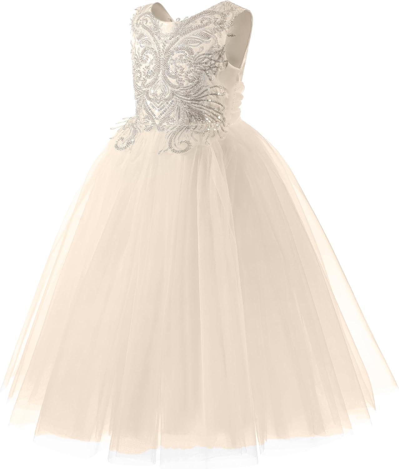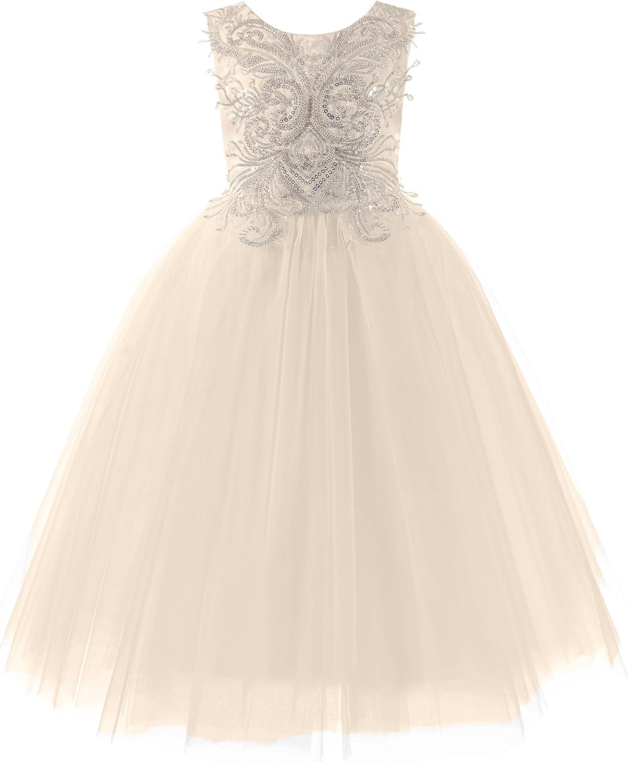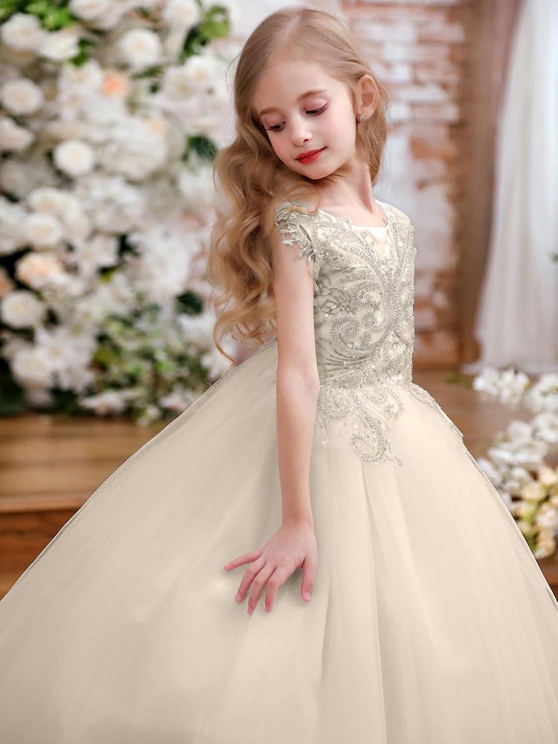Save up to 40% on Fancy Sequin Beaded Girls Pageant Ball Gown Lace V Back Flower Girl Dress for Wedding(Champagne) styles during our end-of-season sale.