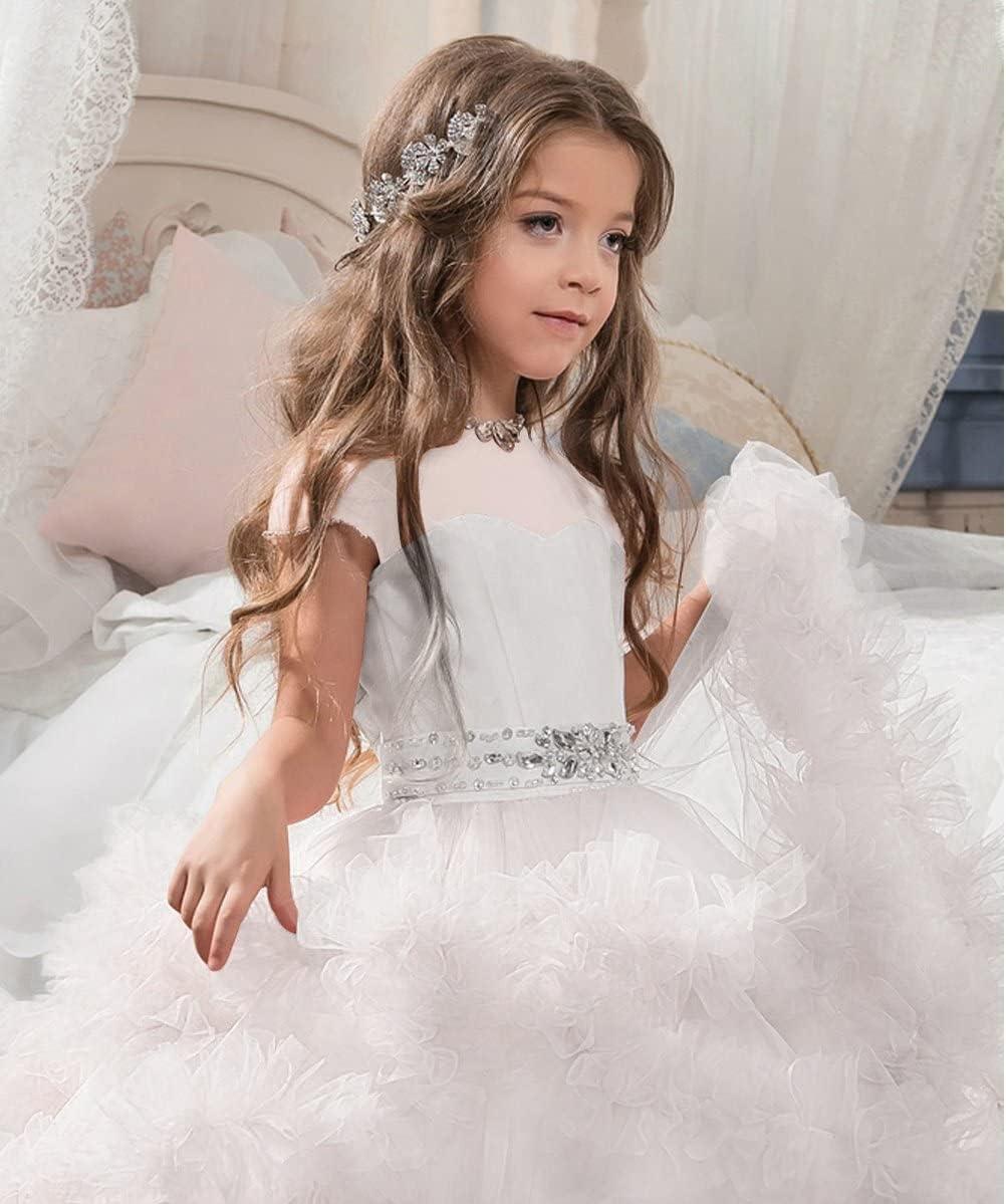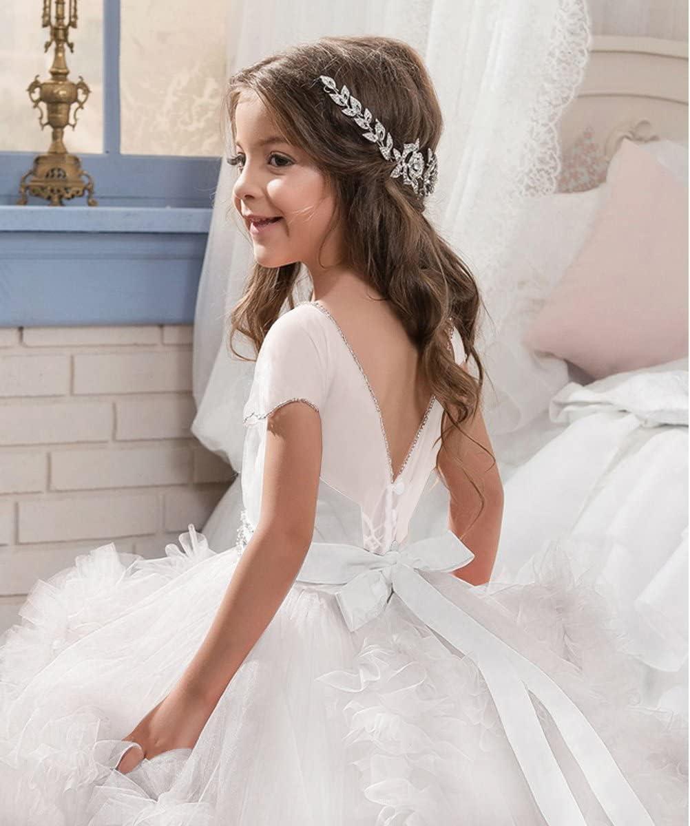 Stunning V-Back Luxury Pageant Tulle Ball Gowns for Girls 2-12 Year Old(White)